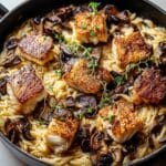 This one pot chicken and mushroom orzo recipe delivers a creamy, comforting meal that’s easy to make on busy weeknights. Tender chicken thighs combine with earthy mushrooms, fresh herbs, and creamy Parmesan for a flavorful, satisfying dish all cooked in a single skillet.