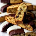 This Pumpkin Biscotti with Cranberries recipe delivers a perfect balance of autumn flavors with the warm spices of pumpkin pie, cinnamon, and tart dried cranberries. Baked twice for a crisp, crunchy texture, these biscotti are dipped in a delightful combination of white and dark melting chocolate, making them a festive treat perfect for pairing with coffee or tea. Made from scratch with a homemade pumpkin butter, these biscotti are ideal for cozy fall gatherings or gifting.