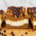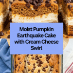 This Pumpkin Earthquake Cake is a moist and flavorful dessert that combines a spiced pumpkin cake with a creamy swirl of sweetened cream cheese and a sprinkle of mini chocolate chips. Perfect for fall gatherings, this unique layered cake offers a delightful texture and rich autumnal taste, baked to perfection in a simple 9×13 pan.