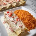 7. Serve: Remove from the oven and let cool for a few minutes. Serve hot and enjoy your creamy, cheesy Queso Chicken Enchiladas!