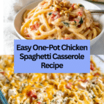 This Quick One-Pot Chicken Spaghetti is a comforting, cheesy casserole that combines tender rotisserie chicken, a creamy tomato-spiced sauce, and perfectly cooked spaghetti. Ready in under an hour, it’s an ideal weeknight dinner that requires minimal fuss but delivers maximum flavor and satisfying texture.