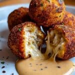 Crispy and flavorful Reuben Balls are a delightful twist on the classic Reuben sandwich. These bite-sized treats combine corned beef, sauerkraut, Swiss and cream cheeses, coated in rye breadcrumbs and fried to golden perfection. Served with a zesty spicy Thousand Island dipping sauce, they make a perfect appetizer or party snack that captures the classic sandwich flavors in a fun, shareable form.