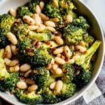 Keywords: roasted broccoli, white beans, healthy side dish, vegetarian recipe, Mediterranean vegetables, easy roasted vegetables, garlic broccoli, lemon beans, plant-based protein