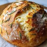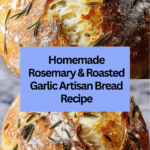 This Rosemary & Roasted Garlic Artisan Bread is a fragrant, flavorful homemade loaf featuring roasted garlic, fresh rosemary, and a perfect golden crust baked in a Dutch oven. With a long rise time to develop depth of flavor and a crispier texture, this bread combines simple ingredients and rustic techniques for an impressive artisan result.