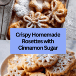 This Rosettes Recipe features crisp, delicate Swedish-style fried pastries made from a light batter flavored with vanilla. Using a special rosette iron, these beautiful, lacy cookies are deep-fried to a golden brown and dusted with a cinnamon-sugar mixture for the perfect sweet finish. Ideal for festive occasions or a unique treat, rosettes deliver a wonderfully airy crunch and a hint of warm spice.