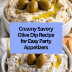 This Savory Olive Dip is a flavorful and creamy appetizer that’s perfect for any party or gathering. Blending briny green olives with creamy cheese and bold seasonings, it’s sure to be a crowd-pleaser. Serve it with crackers, chips, or fresh veggies for a delicious start to your event.