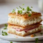 This Savory Mille-Feuille with Lemon Ricotta & Prosciutto is an elegant yet surprisingly simple appetizer. Crisp puff pastry layers are filled with a bright, creamy lemon ricotta and complemented by delicate prosciutto, making it perfect for entertaining or a special treat.