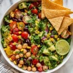 A vibrant and refreshing Southwest Chickpea Black Bean Salad packed with protein-rich chickpeas and black beans, sweet fire-roasted corn, juicy cherry tomatoes, and creamy avocado. Tossed in a zesty lime and smoked paprika dressing, this salad is perfect for a healthy lunch, side dish, or picnic option that can be prepared ahead and chilled for enhanced flavors.