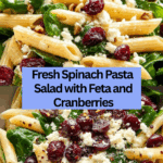 This Spinach Pasta Salad with Feta and Cranberries is a bright, fresh dish perfect for a light lunch or a colorful side. The combination of tangy feta, sweet cranberries, and zesty lemon dressing makes it both flavorful and satisfying.