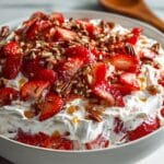 This Delicious Strawberry Crackle Salad is a refreshing and crunchy dessert salad featuring a sweet and buttery pretzel-pecan crust combined with creamy whipped cream cheese and fresh strawberries. It offers a perfect balance of textures and flavors, making it an ideal treat for summer gatherings or potlucks.
