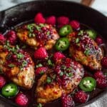 Enjoy a delightful balance of sweet and spicy with this Jalapeno Raspberry Chicken recipe that comes together in just 25 minutes. The juicy chicken thighs are glazed with a vibrant raspberry sauce, accented by fresh jalapenos for a flavorful kick. It’s a perfect quick dinner that’s both impressive and delicious.