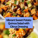 A vibrant and nutritious Sweet Potato Quinoa Salad featuring roasted sweet potatoes, protein-packed quinoa, black beans, creamy avocado, and a zesty lime-maple dressing. This salad combines sweet, savory, and tangy flavors with crunchy almonds and dried cranberries for a wholesome, satisfying meal perfect for lunch or dinner.