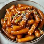 Sweet Soy Butter Korean Rice Cakes are a delightful snack that combines chewy rice cakes with a rich, sweet, and savory glaze. This simple pan-fried dish is quick to prepare and perfect for satisfying cravings or serving as a unique side.