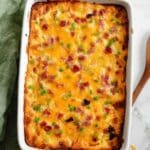 Keywords: tater tot breakfast casserole, breakfast casserole, tater tots, ham casserole, cheesy breakfast bake