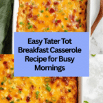 This Tater Tot Breakfast Casserole is a hearty and comforting dish perfect for any morning. Combining crispy frozen tater tots, diced ham, and a cheesy egg mixture, it’s baked to golden perfection and topped with melted cheese for extra richness. Ideal for feeding a crowd or meal prepping, this casserole offers flexibility with meat options and easy make-ahead and freezer-friendly features.