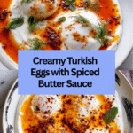 Turkish Eggs, also known as Cilbir, is a traditional Turkish breakfast dish featuring perfectly poached eggs served on a bed of garlicky yogurt infused with fresh herbs and topped with a warm, spiced butter sauce. This dish combines creamy, tangy, and spicy flavors, creating a delightful balance of textures and tastes. It’s a simple yet elegant recipe that brings authentic Turkish flavors to your table.