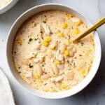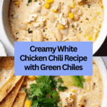 Keywords: white chicken chili, creamy chicken chili, rotisserie chicken recipe, easy chili, white bean chili