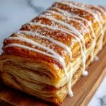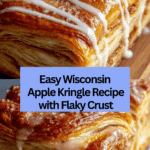 This Wisconsin Apple Kringle is a classic Scandinavian-inspired pastry featuring a flaky, buttery dough filled with spiced apple pie filling, folded into a distinctive oval shape, baked to golden perfection, and finished with a sweet vanilla glaze. It’s an indulgent dessert perfect for breakfast or a special treat.