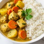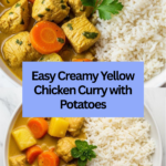 This vibrant Yellow Curry recipe features tender chicken, golden potatoes, and carrots simmered in a fragrant coconut milk-based sauce infused with yellow curry paste, ginger, and garlic. Perfectly balanced with lime juice and brown sugar, it delivers a rich and comforting flavor ideal served over jasmine or brown rice and garnished with fresh cilantro and optional sriracha for extra heat.